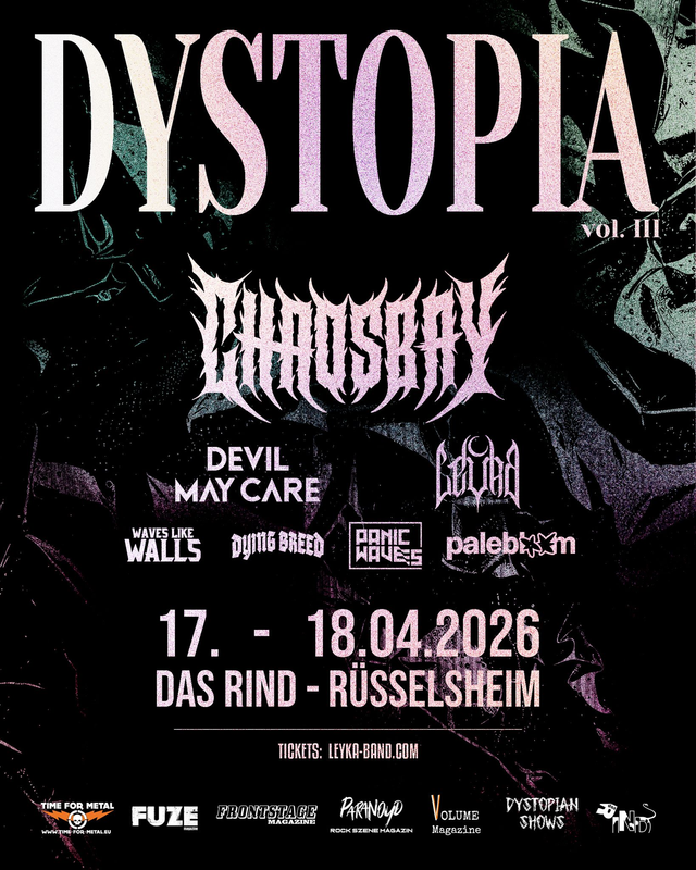Auch 2026 kehrt DYSTOPIA zurück ins Das Rind nach Rüsselsheim. Wie schon in den Vorjahren zeichnet sich das Festival durch einen dynamischen, abwechslungsreichen Mix verschiedener Core-Genres aus. LEYKA treten als Veranstalter an beiden Tagen auf und präsentieren zwei unterschiedliche Sets.